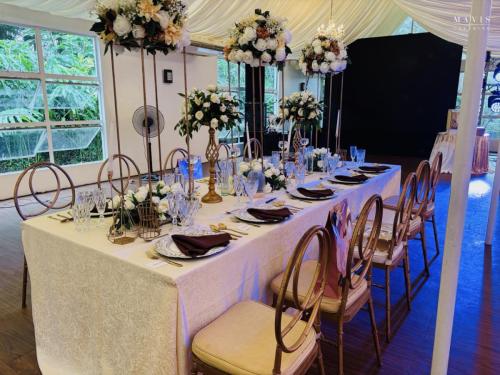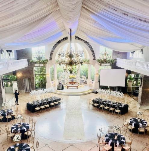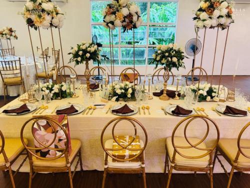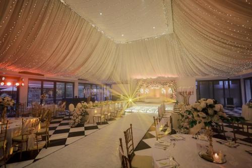 Here are some examples of our unique gold package styling. We are excited to offer customization on any of our designs to perfectly match your specific requirements and preferences. Whether you need adjustments to the color scheme, layout, or any other aspect, we are here to ensure that your reception space looks exactly as you envision it. Please note that ceiling treatment is an optional add-on.