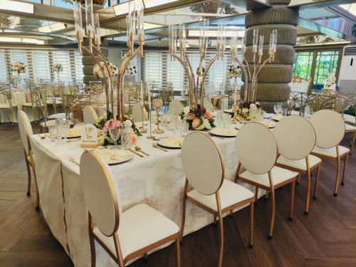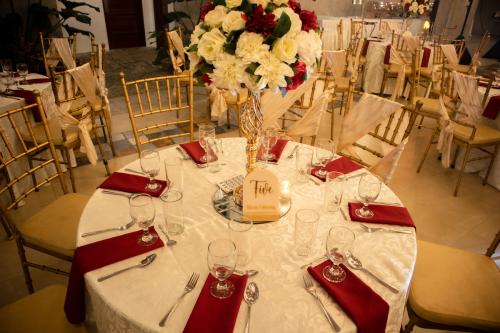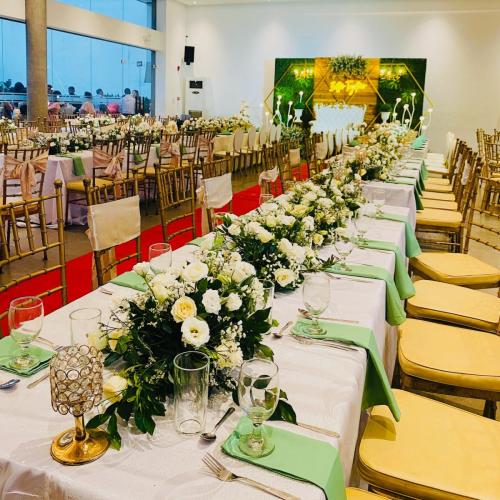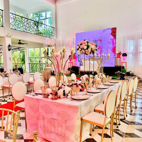Here are some examples of our unique reception styling options. We are excited to offer customization on any of our designs to perfectly match your specific requirements and preferences. Whether you need adjustments to the color scheme, layout, or any other aspect, we are here to ensure that your reception space looks exactly as you envision it.