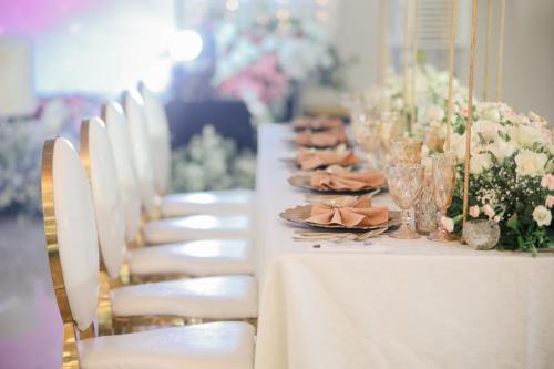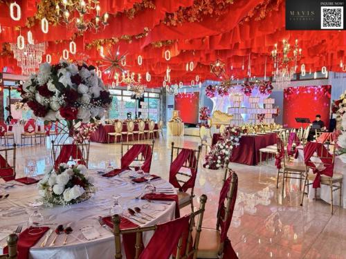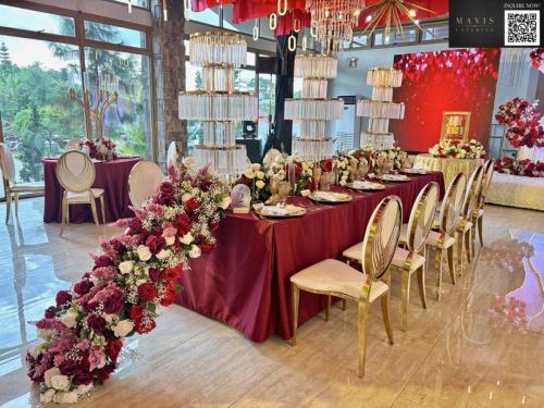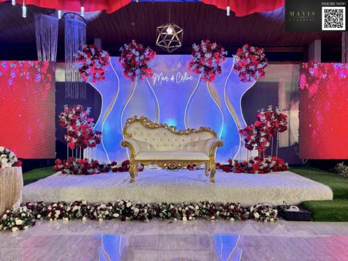 Here are some examples of our unique royal package styling. We are excited to offer customization on any of our designs to perfectly match your specific requirements and preferences. Whether you need adjustments to the color scheme, layout, or any other aspect, we are here to ensure that your reception space looks exactly as you envision it. Please note that ceiling treatment is an optional add-on.